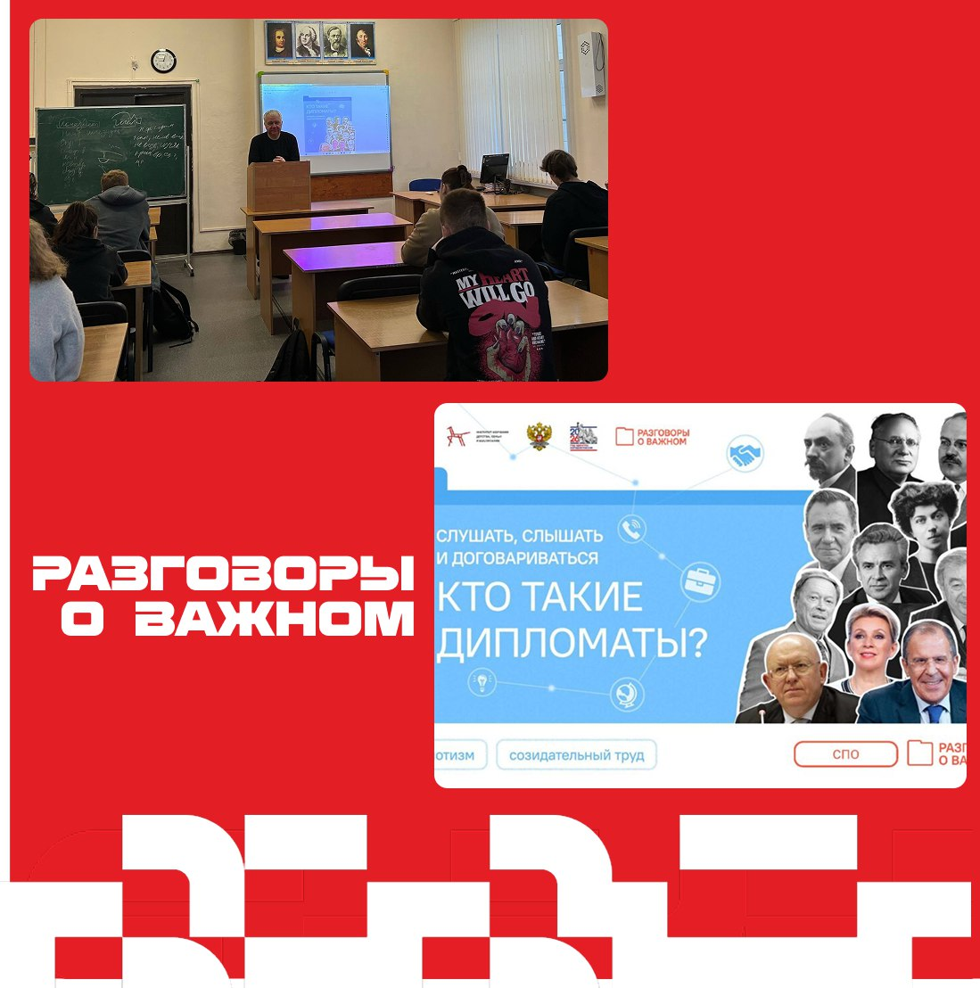 9 февраля в «УОР №2» прошло традиционное занятие из цикла «Разговоры о важном», посвященное Дню дипломатического работника. В рамках занятия, обучающиеся познакомились с основными направлениями дипломатической деятельности, обсудили роль дипломатов в международных отношениях, а также требований к личным и профессиональным качествам специалистов данной сферы. Дипломатия — это искусство взаимодействия не только на мировой арене. Каждый из нас легко вспомнит ситуацию, когда было необходимо проявить деликатность и выдержку в общении с другими людьми. И мы применяли одну из тактик ведения переговоров. В теории ведения переговоров таких тактик несколько: стратегия ухода, стратегия уступки, стратегия сотрудничества, стратегия соперничества, стратегия компромисса. «Разговоры о важном» — цикл внеурочных занятий, посвященных истории, культуре и географии России, а также актуальным темам из повседневной жизни школьников. Он был запущен Министерством образования РФ в 2022 году. Уроки проходят каждый понедельник во всех школах и колледжах страны.