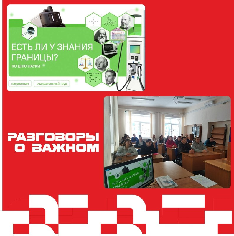 На занятии обсудили ключевые достижения российских учёных и приоритетные направления отечественной науки. Особое внимание уделили вопросам уважения к научному труду и ответственности исследователя.