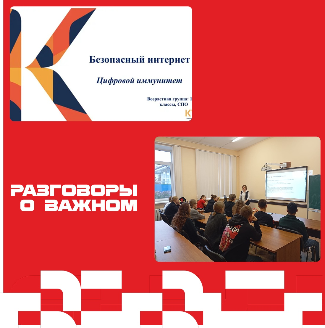 Проект «Разговоры о важном» направлен на развитие осознанного отношения молодёжи к вопросам информационной безопасности и помогает сформировать необходимые знания и навыки для комфортного и безопасного взаимодействия в виртуальном мире.